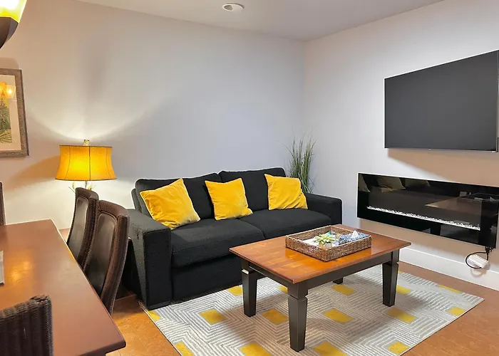 Quest'appartamento è dotato di una cucina completamente attrezzata, che include un microonde, un bollitore elettrico e un frigo, per garantire la massima comodità. Il ristorante The Wandering Elk, che prepara piatti canadesi, si trova a due passi da questa struttura. Inoltre, quest'alloggio offre agli ospiti l'accesso a un centro fitness, consentendo loro di concentrarsi sul proprio benessere fisico.